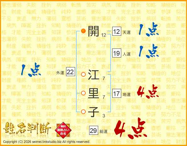 開江里子さんの総運は29画の4点!