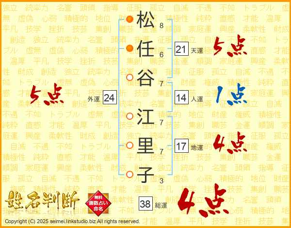 松(8画)任(6画)谷(7画) 江(7画)里(7画)子(3画)