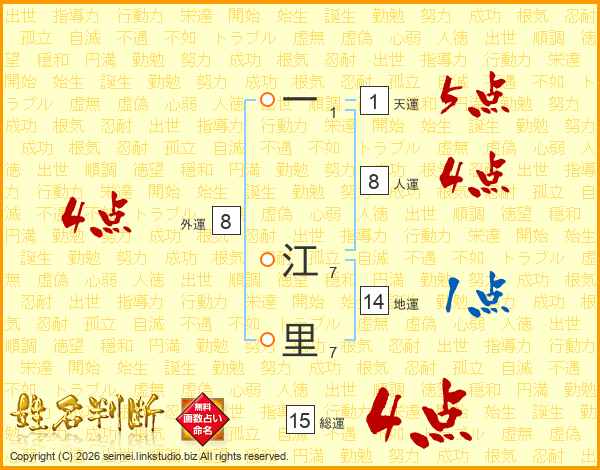 一江里さんの総運は15画の4点!