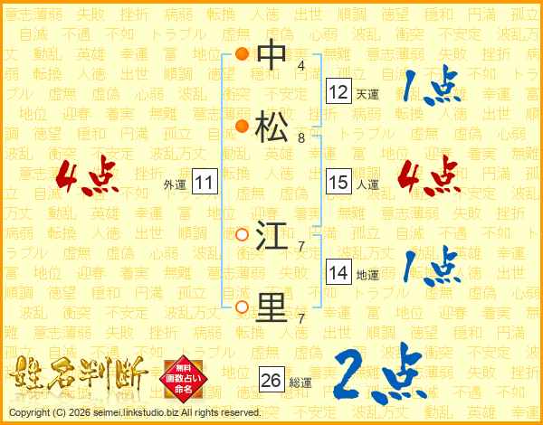 中(4画)松(8画) 江(7画)里(7画)