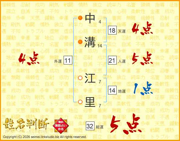 中溝江里さんの総運は32画の5点!