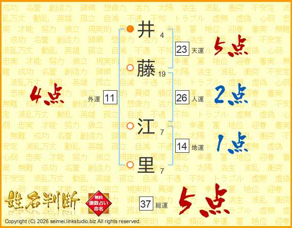 井藤江里さんの総運は37画の5点!
