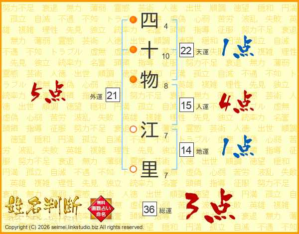 四十物江里さんの総運は36画の3点!