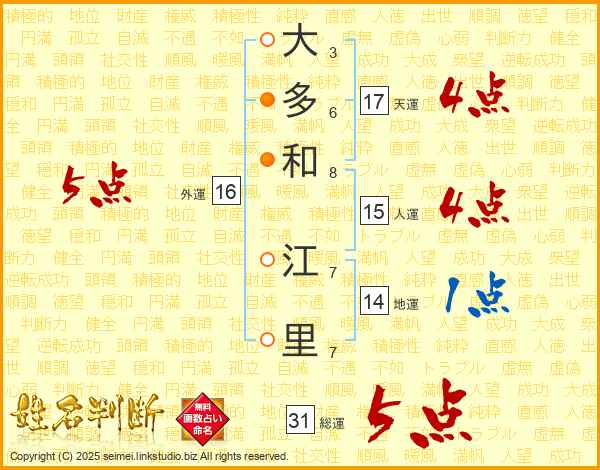 大多和江里さんの総運は31画の5点!