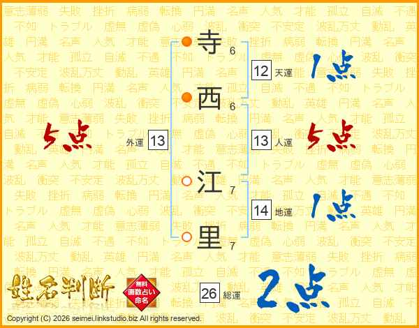 寺西江里さんの人運は13画の5点!