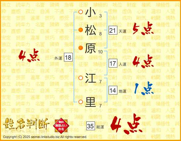 小(3画)松(8画)原(10画) 江(7画)里(7画)