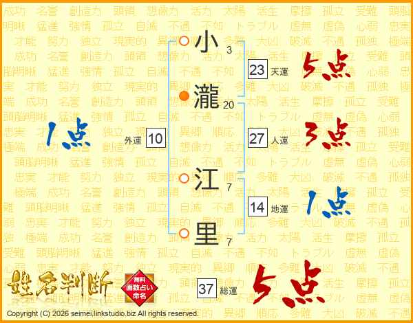 小瀧江里さんの総運は37画の5点!