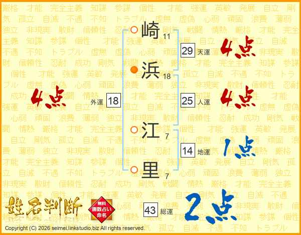崎浜江里さんの総運は43画の2点!