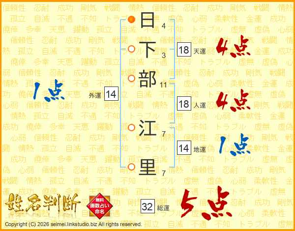 日下部江里さんの天運は18画の4点!