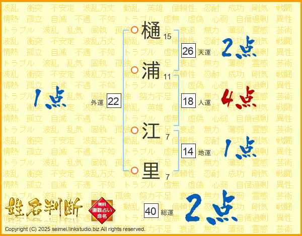 樋浦江里さんの天運は26画の2点!