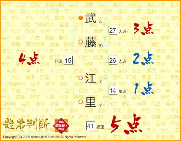 武(8画)藤(19画) 江(7画)里(7画)