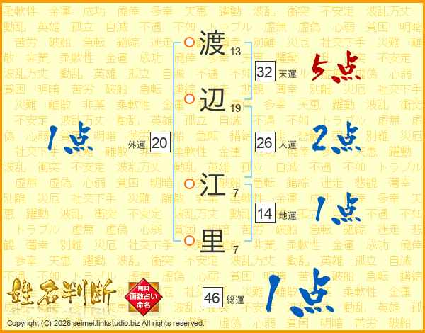 渡辺江里さんの総運は46画の1点!