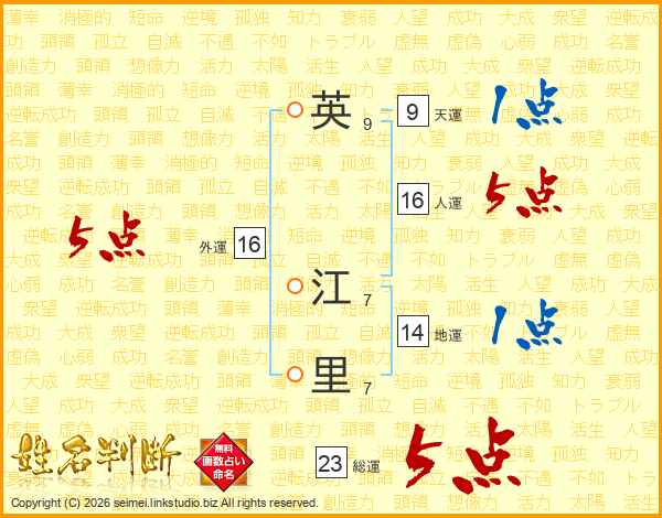 英江里さんの総運は23画の5点!