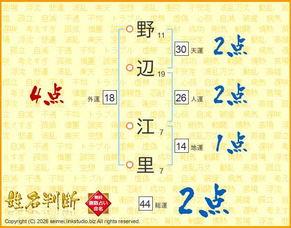 野辺江里さんの総運は44画の2点!