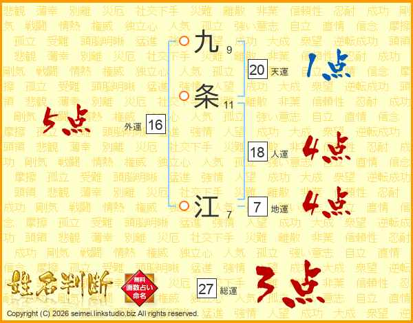九条江さんの総運は27画の3点!