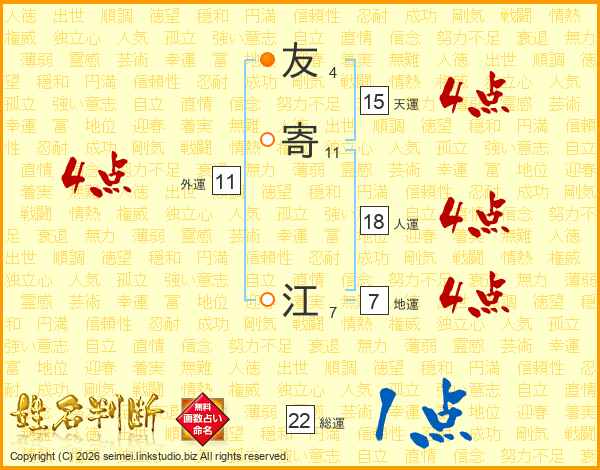 友寄江さんの総運は22画の1点!