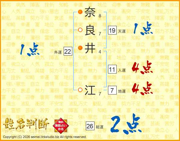 奈良井江さんの人運は11画の4点!