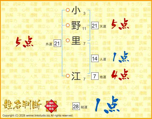 小野里江さんの総運は28画の1点!