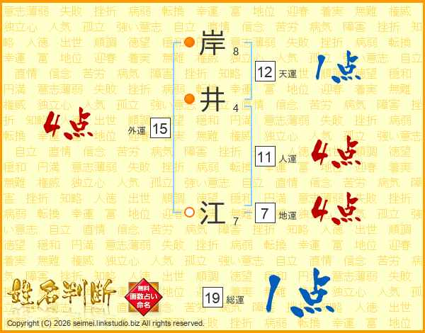 岸井江さんの人運は11画の4点!