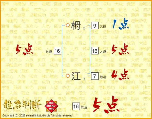 栂江さんの人運は16画の5点!