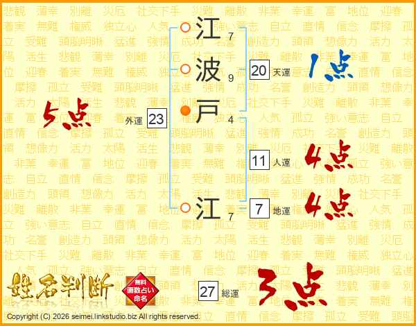 江波戸江さんの総運は27画の3点!