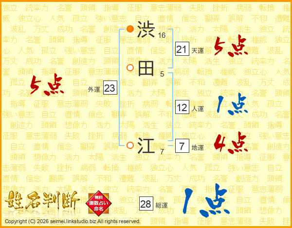 渋田江さんの総運は28画の1点!