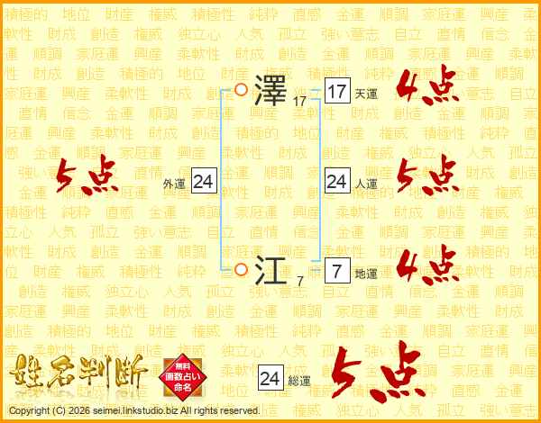 澤江さんの人運は24画の5点