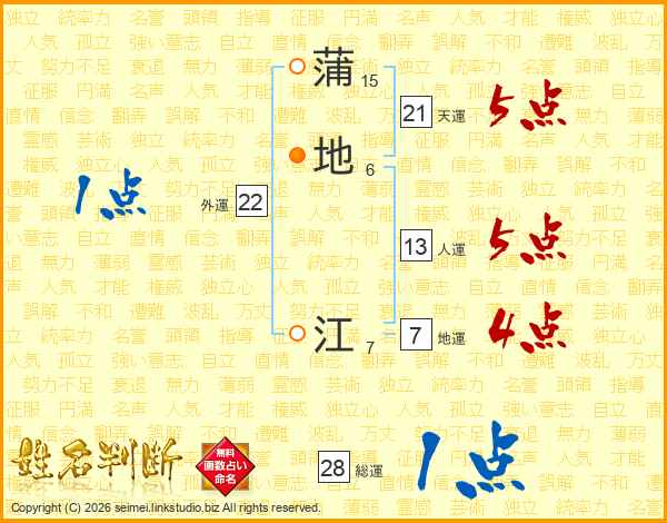 蒲地江さんの天運は21画の5点!