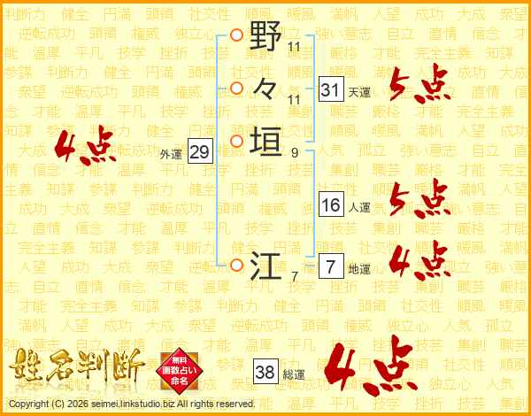 野々垣江さんの総運は38画の4点!