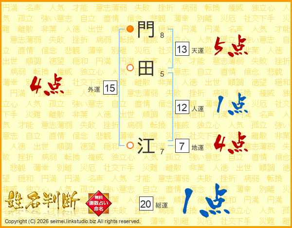 門田江さんの天運は13画の5点!