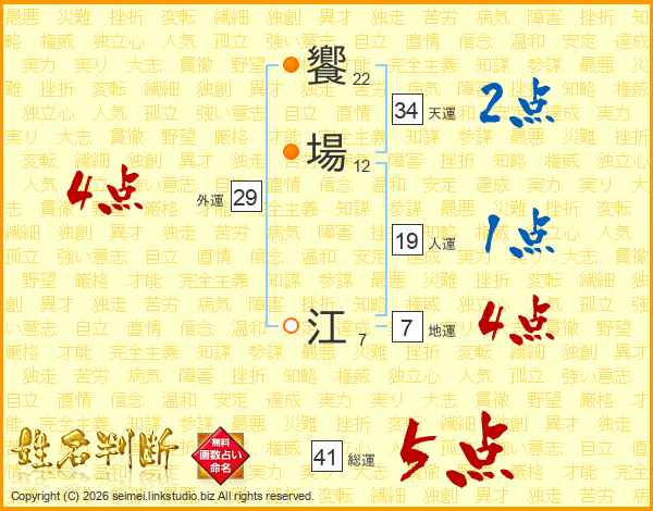 饗場江さんの総運は41画の5点!