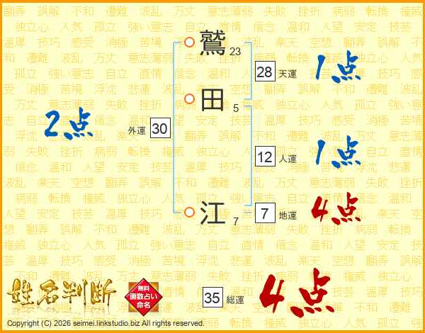 鷲田江さんの総運は35画の4点!