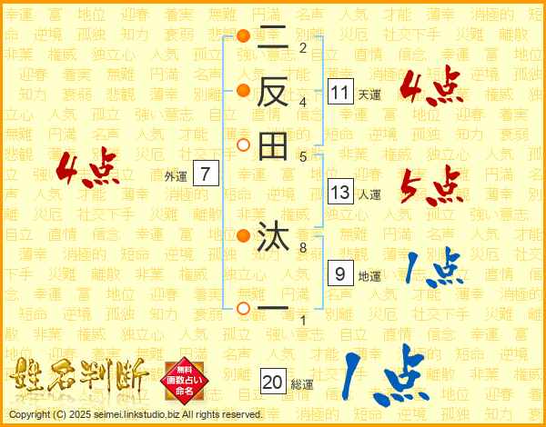 二反田汰一さんの天運は11画の4点!