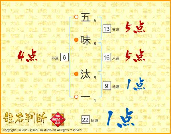 五味汰一さんの総運は22画の1点!