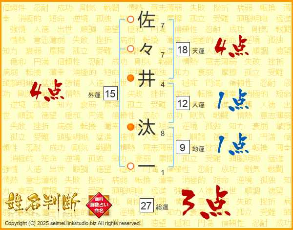 佐々井汰一さんの総運は27画の3点!