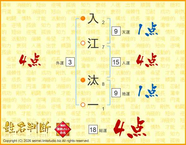 入江汰一さんの総運は18画の4点!