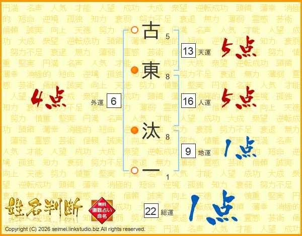 古東汰一さんの総運は22画の1点!