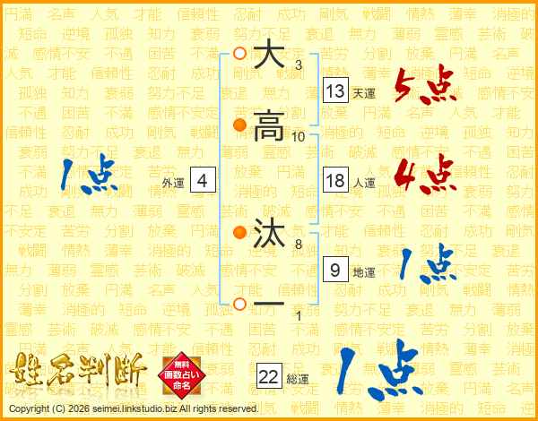 大高汰一さんの天運は13画の5点!
