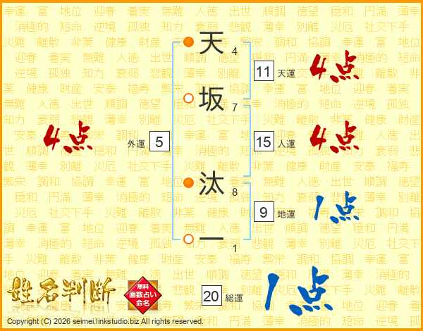 天坂汰一さんの総運は20画の1点!