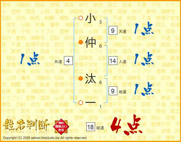 小仲汰一さんの人運は14画の1点!