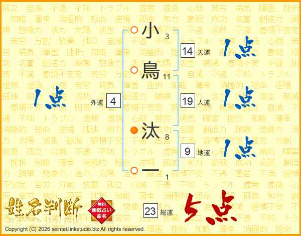 小鳥汰一さんの総運は23画の5点!