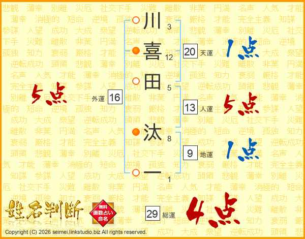 川喜田汰一さんの総運は29画の4点!