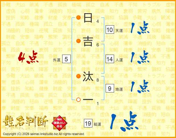 日(4画)吉(6画) 汰(8画)一(1画)