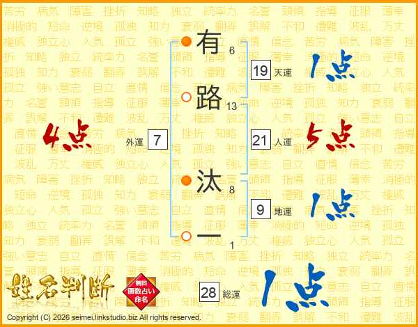 有路汰一さんの総運は28画の1点!