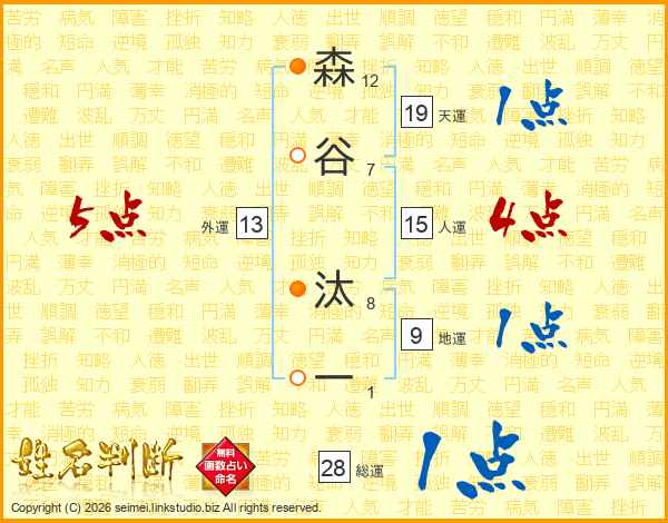 森谷汰一さんの総運は28画の1点!