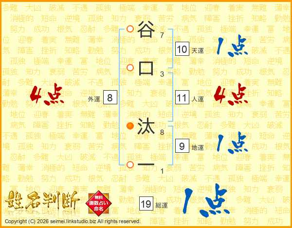 谷口汰一さんの人運は11画の4点!