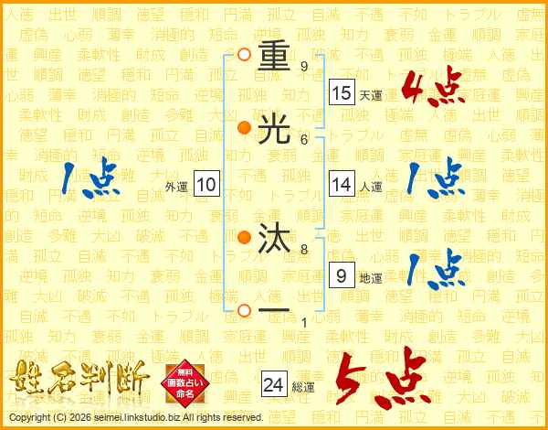 重光汰一さんの総運は24画の5点!
