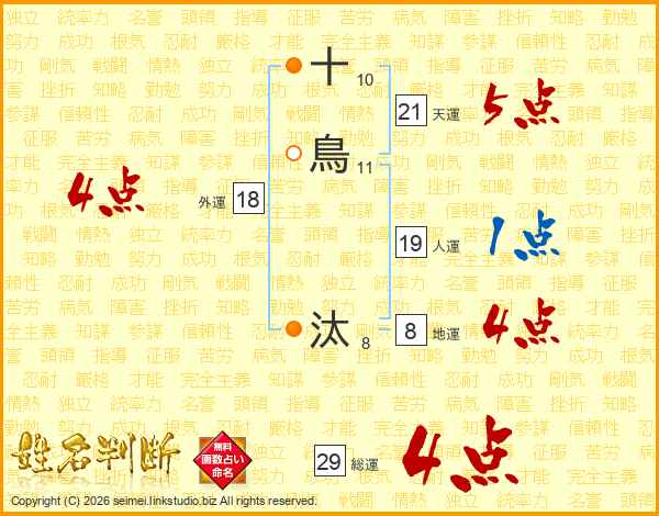 十鳥汰さんの総運は29画の4点!