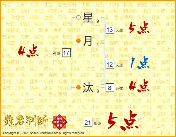 星月汰さんの総運は21画の5点!