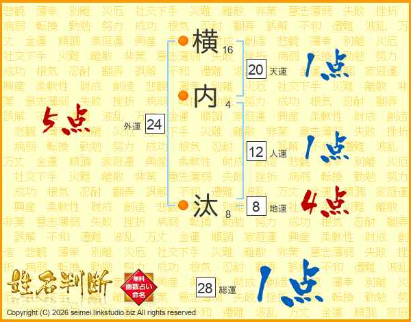 横内汰さんの総運は28画の1点!